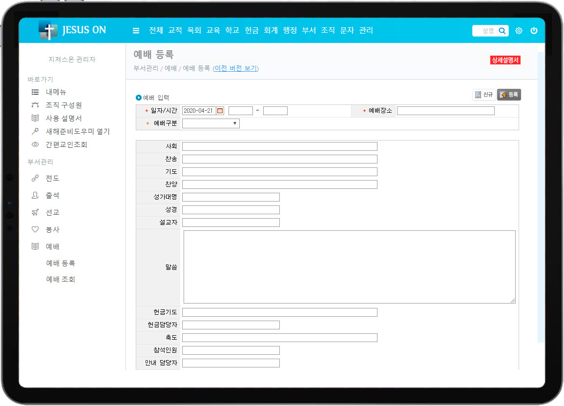 • 예배 내용을 관리 합니다.