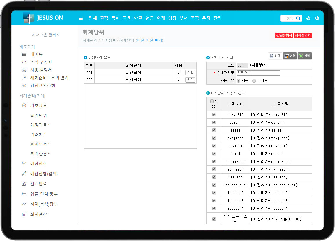 일반회계, 특별회계 등의 회계단위를 무제한 생성