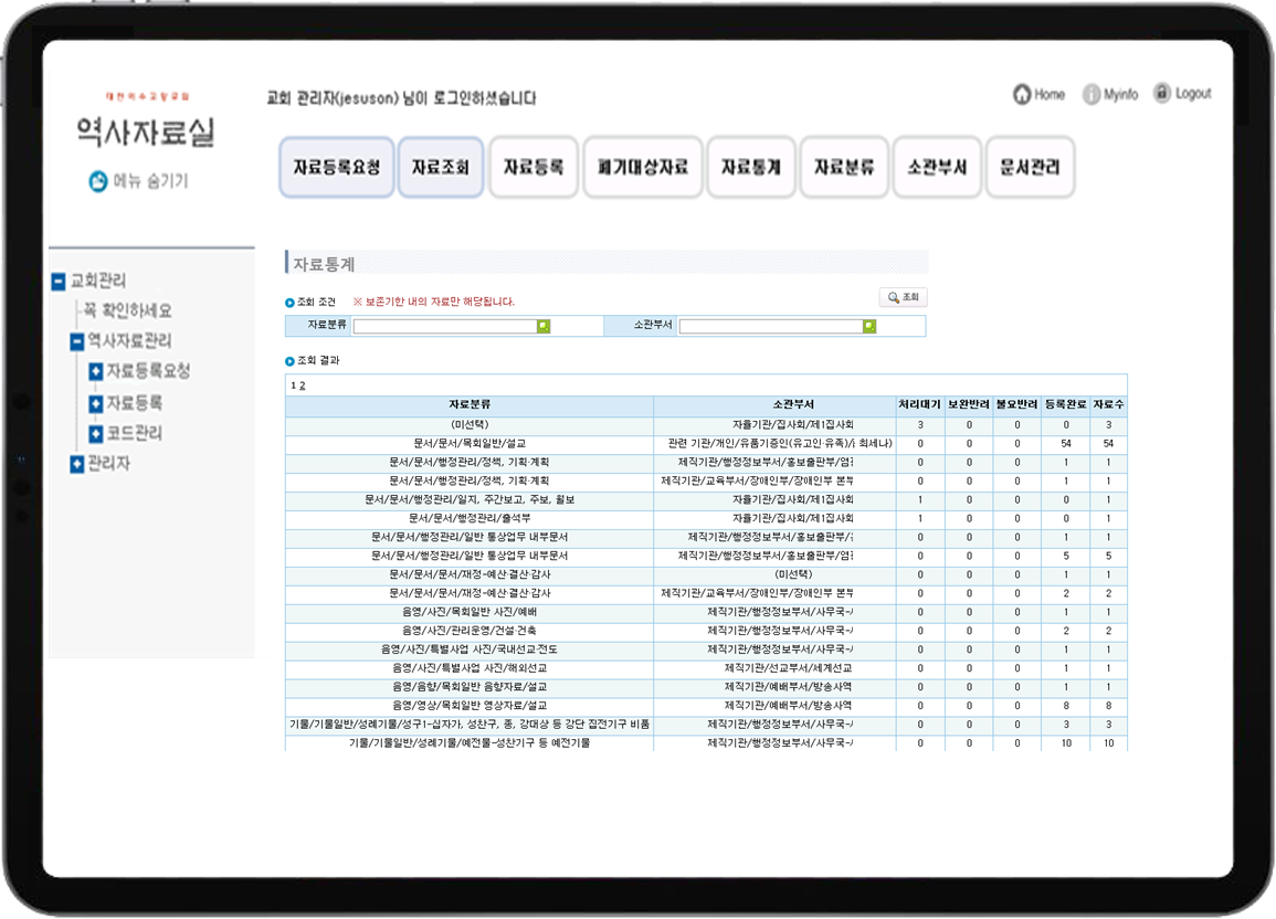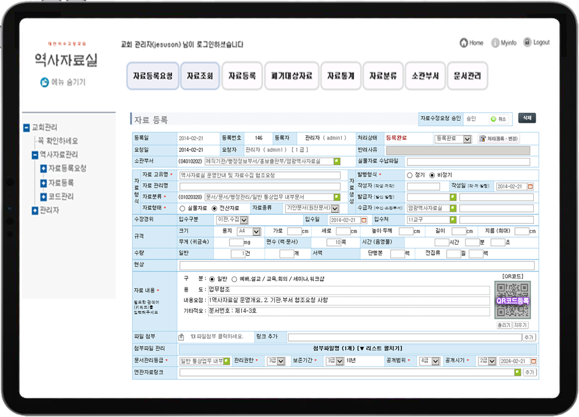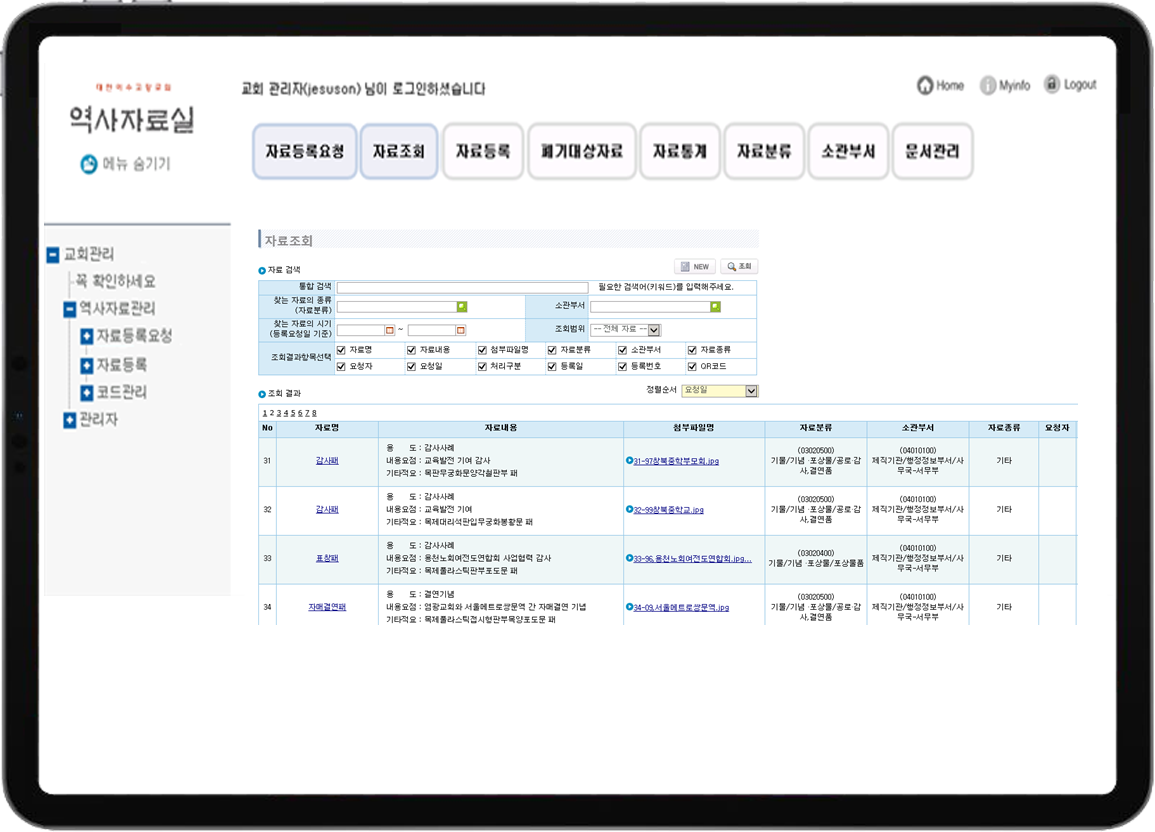 교회의 역사와 관련된 문서, 음향, 설교/영상 파일 등의 자료를 체계적으로 관리하는 프로그램 입니다.