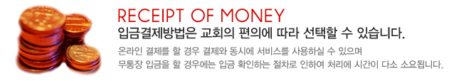 은행에 직접 방문하시어 결제하시거나 은행 CD기, 인터넷뱅킹, 텔레뱅킹 등으로 결제가 가능합니다.
